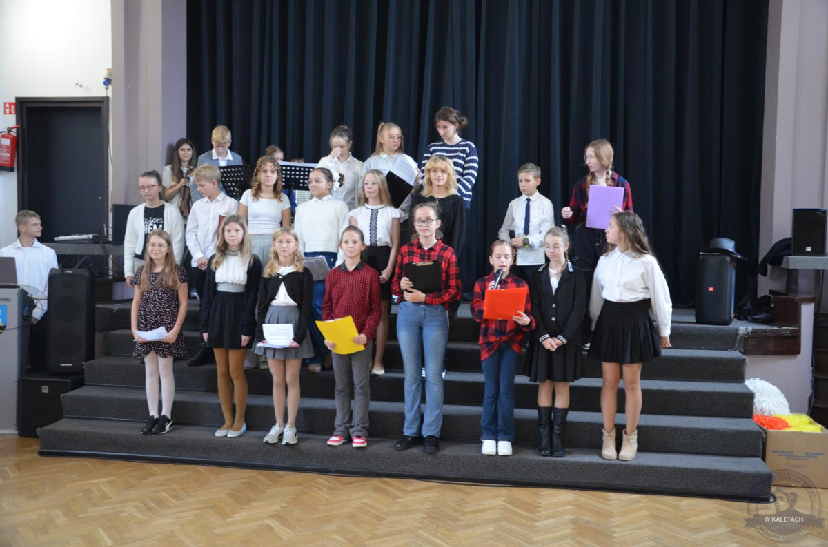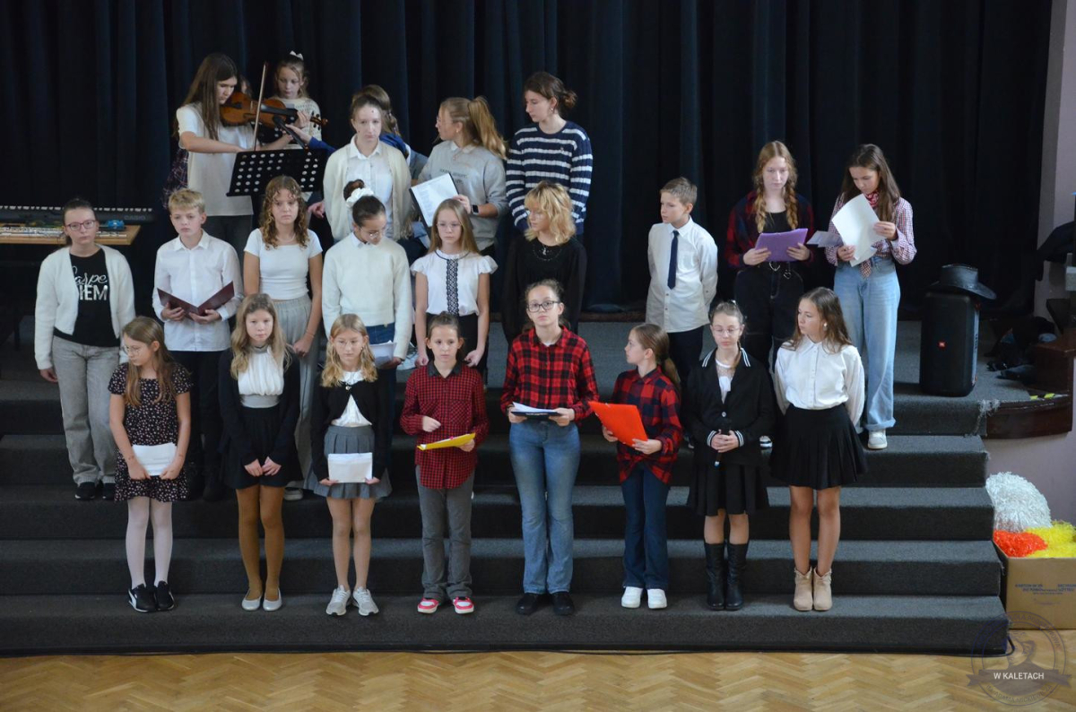 Podkreślił, jak ważna i odpowiedzialna jest rola nauczyciela w kształtowaniu młodych umysłów i wychowywaniu przyszłych pokoleń. Część artystyczną przygotowały Pani Ewelina Smoleńska i Pani Iwona Olszowska wraz z uczniami. Program był niezwykle różnorodny i pełen emocji – znalazły się w nim wiersze, piosenki, tańce oraz występy instrumentalne m.in. na flecie i skrzypcach. Występy uczniów zostały nagrodzone gromkimi brawami, a na twarzach nauczycieli nie brakowało wzruszenia i uśmiechu. Na zakończenie uczniowie złożyli wszystkim nauczycielom serdeczne życzenia.