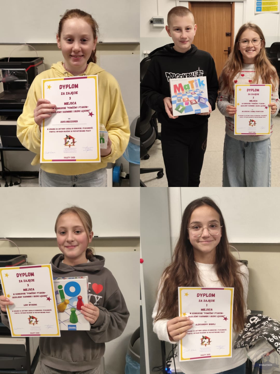 W naszej szkole zakończyła się kolejna edycja konkursu techniczno-przyrodniczego „Pomóżmy ptakom – budujemy karmniki i budki lęgowe”. Uczniowie wykazali się ogromną kreatywnością, starannością i troską o środowisko. Wszystkie prace zachwyciły jury – zarówno pomysłami konstrukcyjnymi, jak i estetyką wykonania.