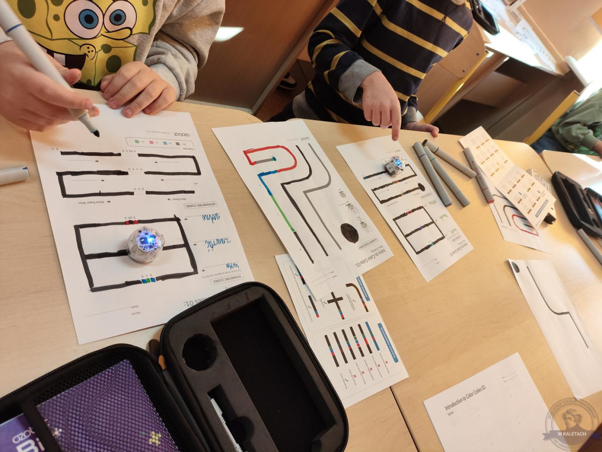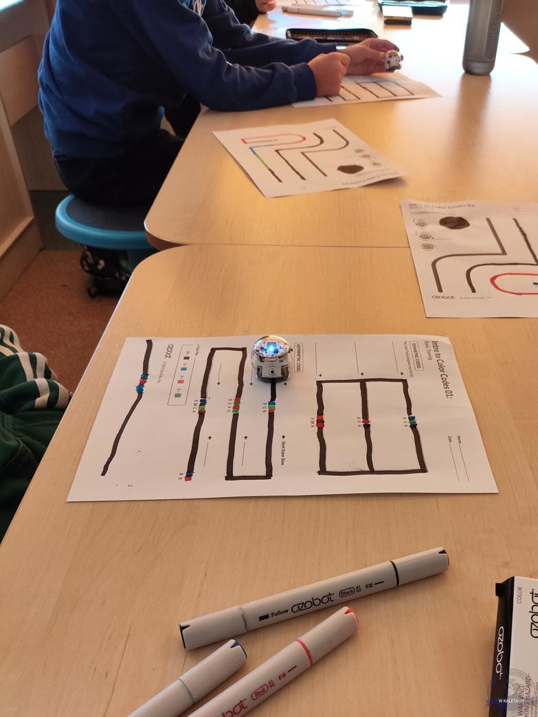 Na kółku informatyczno-robotycznym młodsi uczniowie rozpoczęli swoją przygodę z programowaniem od pracy z Ozobotami – małymi, sympatycznymi robotami, które reagują na kolory i linie. Dzięki nim uczą się logicznego myślenia, planowania oraz współpracy. Starsi uczniowie rozwijają swoje zainteresowania nowymi technologiami i programowaniem. Również wykorzystują m.in. Ozoboty, które pozwalają im w przystępny i angażujący sposób poznawać zasady kodowania. Z robotów tych korzystają zarówno młodsi, jak i starsi uczniowie – jedni programują je za pomocą kolorowych kodów, inni pracują już z aplikacją, tworząc bardziej złożone sekwencje poleceń.