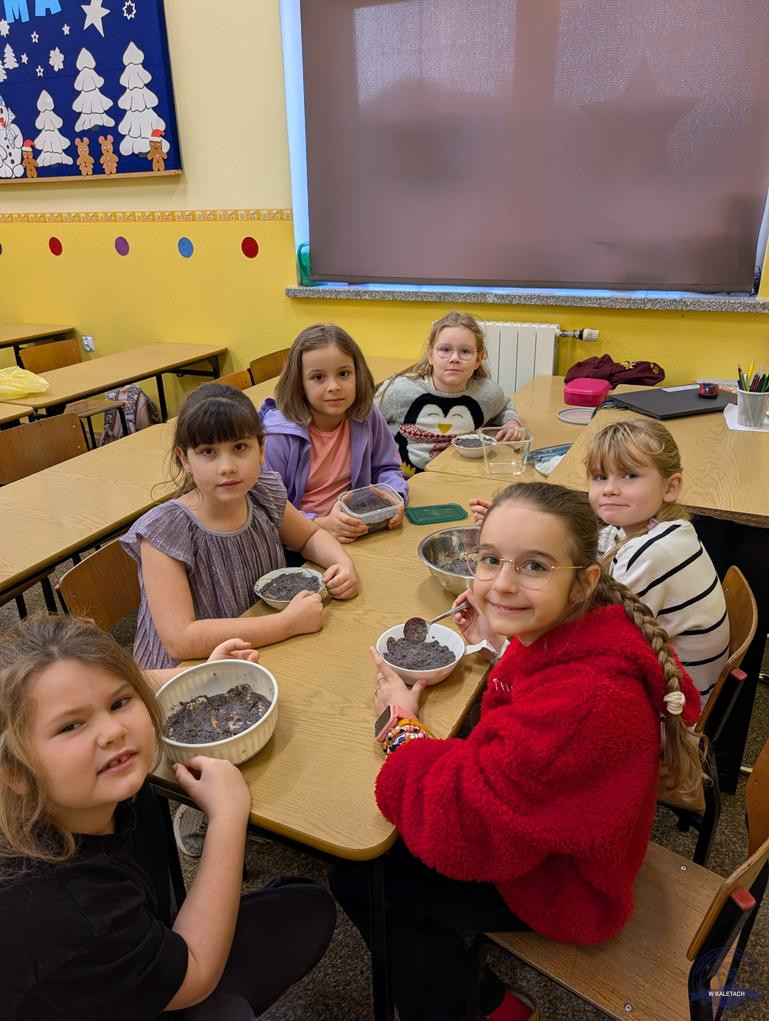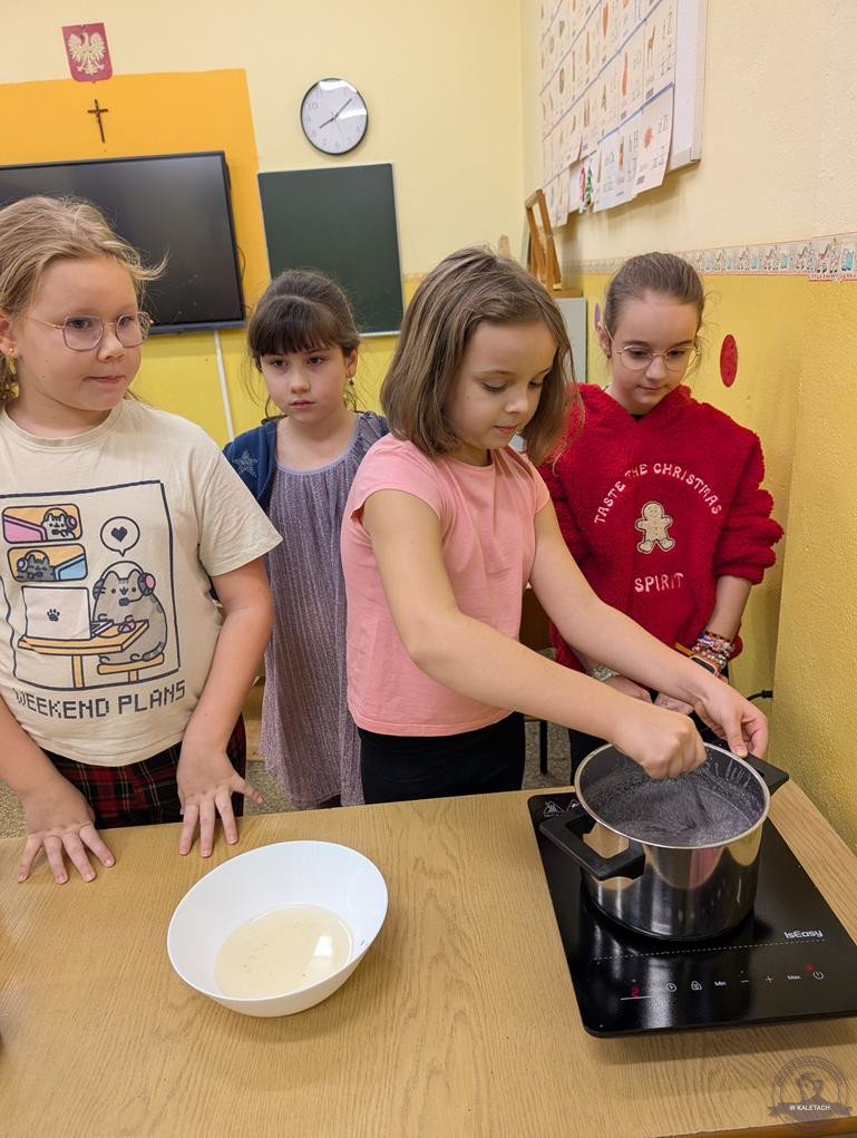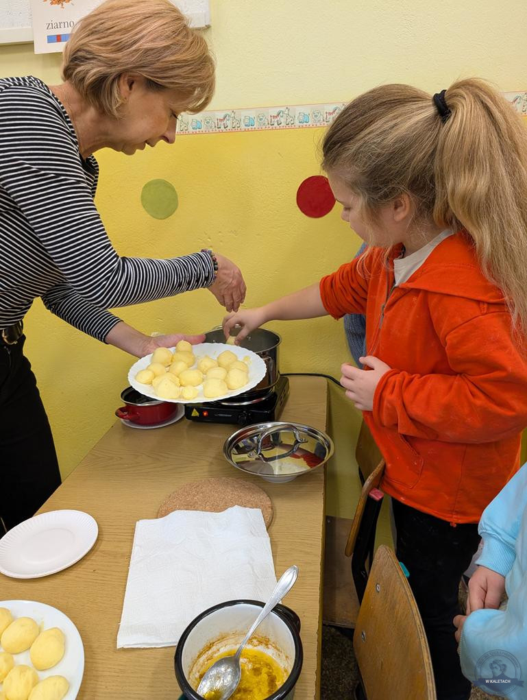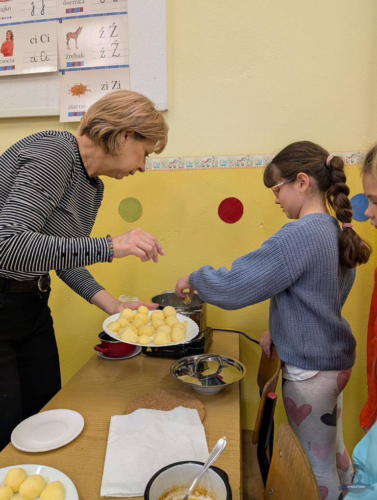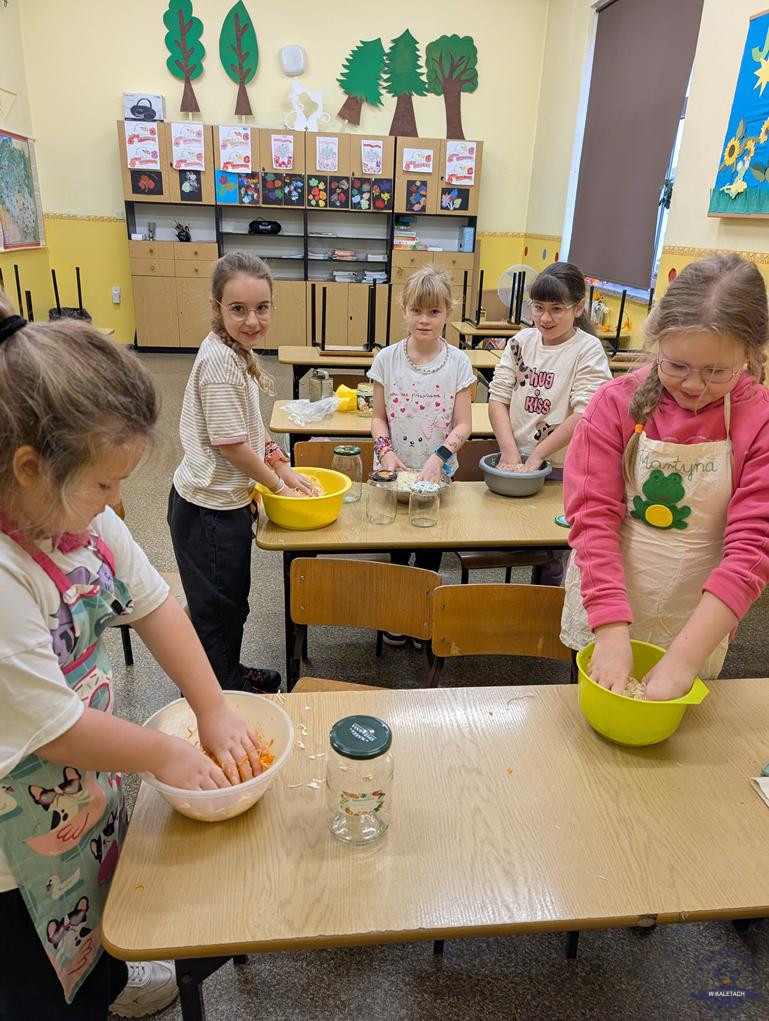 Podczas zajęć kulinarnych uczniowie zamieniają się w prawdziwych małych szefów kuchni. Wspólnie przygotowują tradycyjne kluski śląskie, z zaangażowaniem kiszą kapustę, z uśmiechem smażą naleśniki, tworzą świąteczne makówki i komponują kolorowe, pełne witamin kanapki.